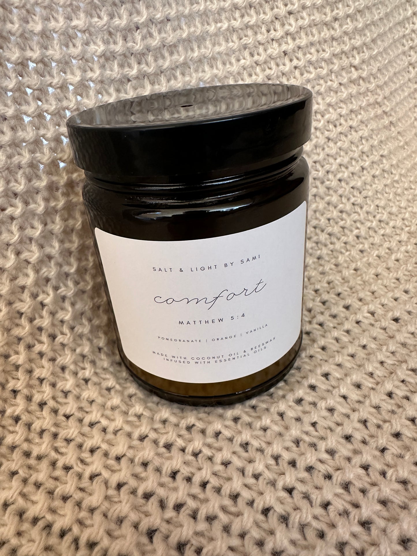 - Blessed Are Those Who Mourn - Matthew 5:4 Candle: Coconut Oil & Beeswax infused with Pomegranate, Orange & Vanilla